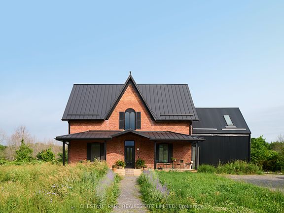 A landmark restoration unlike anything ever seen in Prince Edward County. This fully furnished 5-bedroom, 4-bath estate-valued with curated furnishings at $200,000-is the visionary work of V+R Interior Designs by Vanessa Emam and has been featured in The Globe and Mail and ELLE Canada Decoration for its masterful blend of heritage architecture and modern European design. Originally built in 1875 and entirely rebuilt with meticulous intention, every material tells a story-Italian Scavolini cabinetry, Gaggenau and Bertazzoni appliances, handcrafted Spanish tiles, and repurposed barn beams reclaimed from the original property. Vaulted ceilings, architectural lighting, and bespoke finishes unfold across 30+ acres of privacy, creating a warm yet elevated country estate. Offered fully turnkey, this is a rare opportunity to own one of PEC's most celebrated homes-a design-forward legacy property where history and innovation meet.