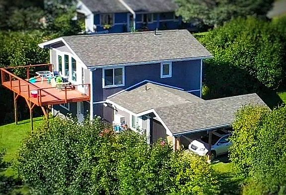 THE HOME This beautiful home is quietly nestled in downtown Homer yet it has breathtaking panoramic views of Kachemak Bay! Looking out the bay view windows in the summer you'll see lush green trees out every window and watch moose bed down in the backyard under the setting sun. Crack open a window and listen to the babbling brook that flows along the property. Being a south facing lot, you'll enjoy the large private deck and back yard not visible from the road. HOME HIGHLIGHTS - 5 star energy rated - 4 bedroom, 2.5 bathroom - Car port - Large crushed gravel driveway capable of accommodating a large camper, boat or 6 vehicles not including the car port - Lots of old growth Alder and Spruce trees on the property - The trees also create an excellent barrier around the house to make it feel surprisingly private Large front and back yard - Babbling brook next to the house. Great for children to play and explore in or adults to set a bench under the Spruce or Alder trees and enjoy the relaxing sound of the stream - Natural gas cook stove, Rinnai Heater, Rinnai On Demand Water Heater and Dryer which helps reduce utilities - Hardwood bamboo flooring and porcelain tile throughout - Large bay view windows - Lots of windows throughout the rest of the home allow for plenty of natural light which requires less artificial light and helps reduce electric usage - Open floor plan living room/kitchen/dining area with vaulted ceiling on the second floor to maximize view - Spacious pantry off of kitchen - Farmhouse fireclay apron front sink in kitchen - Durable, solid surface countertop in kitchen - Large, easily accessible crawl space for storage. - Soft close kitchen drawers - Beautiful customized dresser turned vanity with vessel sink in ensuite master bathroom. - Walk in closet in master bedroom - Quiet safe neighborhood on a dead end street so there is very little traffic - Several great hiking trails nearby - Conveniently located and close to beaches, restaurants, South Peninsula Hospital, Karen Hornaday Park, entertainment etc. - Short Walking distance to West Homer Elementary, Homer Middle School/The SPARC This lovely, energy efficient, private home is ready for a variety of individuals, lifestyles and circumstances. We're excited to give pre-approved buyers a chance to schedule a time to check out our home.