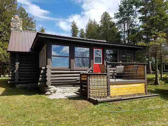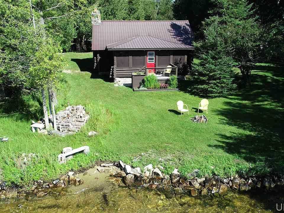 Exceptional Log home with breathtaking sunsets views of Gulliver Lake! This home is simply one of a kind. With charm gleaming throughout, there are just enough upgrades to keep you comfortable without compromising the 1937 character. Features include a large master bedroom with double closets and inviting lake views positioned close to the updated bathroom. The kitchen was designed perfectly to give you ample cupboard and counter space to fit the area. There is a half bath, loft, office area, and living room with stone fireplace. You can enjoy the lake from the 3 season porch or use it for an extra place for guests. You can also have them stay in the "she shed" which was converted to a guest cabin. With 150' of frontage you have privacy and seclusion on the wooded lot. Appliances and some furnishings included in the sale! Act now to own your own piece of history on Gulliver Lake!
