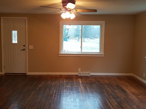 Nice 2 bedroom place in the country. Neat and clean and move in ready. Every room has been painted. New lighting fixtures. Kitchen cabinets and back splash were replaced since August of 2016. Furnace and roof are approximately 5 - 8 years old. Range and fridge are only a couple years old. New wood floors in the kitchen and dining area. Garage will hold 2 cars or trucks easily plus there is room for storage or work benches in front of the vehicles and an area with a pot belly wood stove just waiting to become a man cave or she-shed.