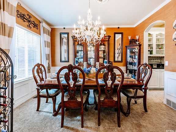 Lovely Draper Home with many upgrades, located in HIGHLY Sought After NEIGHBORHOOD just listed. This home boasts an open floor plan with high vaulted ceilings, big beautiful windows and breath taking views of the mountains. Updated gourmet kitchen with granite counters and wonderful large island. Dishwasher is a "Drawer unit" for convenience and aesthetics Double Ovens and Gas cook top for the chef in the family. Home has soft and thick upgraded carpet and upgraded pet pad for moisture and stain control. Master bedroom has fireplace to enjoy during the cold winter months. Basement has large great room for family gatherings or entertaining with wet bar / kitchen. You will never run out of hot water again with the tankless water heater. Yard is fully fenced with Automatic sprinklers and access to irrigation water in the summer months. Enjoy the big gazebo for summer gatherings, fire pit for roasting marshmallows and an in-ground trampoline with a brand new pad for the kids to enjoy. Talk about location too...close to schools, shopping, freeway, canyons! This home has it all! ***Square footage figures are provided as a courtesy estimate only and were obtained from County Records . Buyer is advised to obtain an independent measurement.