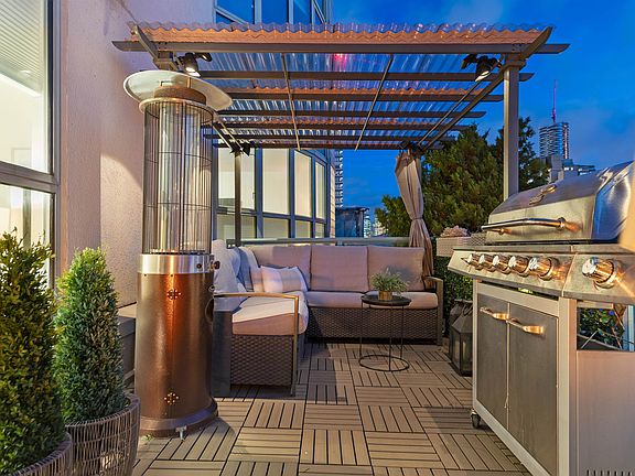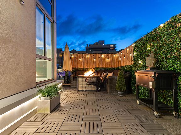 Live Exceptionally in the Heart of Downtown! Experience executive luxury just steps from the world-class shops and dining of Alberni and Robson Street. This rare 1,000+ SF corner residence features a massive 400 SF private wraparound patio—perfect for entertaining or creating your own urban escape.Enter through grand double doors into a bright, open-concept living space with floor-to-ceiling windows, custom blinds, and sweeping city views. The sleek kitchen with a large island flows into the living area, complete with a cozy gas fireplace.Fully renovated in 2018 with high-end finishes, sensor-lit built-in closets, and spacious bedrooms. Bonus: 2 side-by-side parking stalls, 1 storage locker, pet-friendly, and no rental restrictions.This isn’t just a home—it’s a lifestyle.