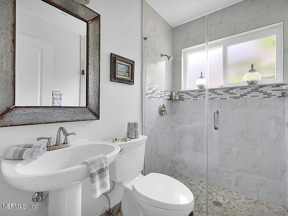 This well-appointed home in the heart of Odom's Mill has all of the features that you could possibly imagine. A stunning brick home nestled in one of the most sought-after neighborhoods in Ponte Vedra Beach, with all the conveniences right around the corner. This beautiful residence has been updated to suit today's modern lifestyle. The kitchen features Viking appliances, an abundance of custom cabinets, and granite countertops. Recent updates include modern white oak flooring, custom closets, updated bathrooms, and a cozy new fireplace, adding a touch of contemporary comfort. Set on a private lot facing a serene wooded preserve with screened-in porch, this home provides a tranquil setting for relaxation. You'll be pleasantly surprised in the primary bedroom, with a rare find of two separate bathrooms and custom closets, offering a touch of luxury and privacy. Located on Mill Stream, this property offers convenient private sidewalk access to local schools.