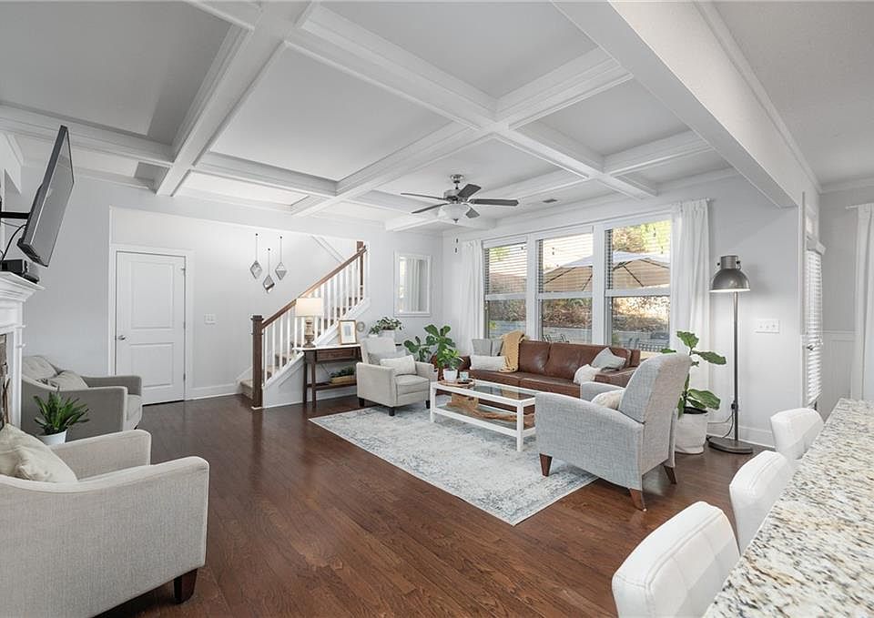 Better than New, Rocklyn built home nestled in sought after Volunteer Ridge. This home has today's buyers' lifestyle needs for an open concept with a dedicated work from home space. Enjoy hardwood flooring throughout the entire main level, coffered ceilings adorning the living space, and a convenient mudroom at the owners entry. The chef's kitchen has custom cabinets with stainless steel appliances and a large island for entertaining. This home has character with millwork, built-in bookshelves, large trim and baseboards. The backyard is fenced and has a cute garden feel with a raised portion of the yard for entertaining. The location is perfect and within a 15 minute drive to the Battery, Mercedes Benz Stadium or downtown Atlanta. Easy access to the Silver Comet Trail and Riverview Landing Development. Step Out the community to coffee shops, the Providence Pavillion Plaza, and casual dining options. Enjoy access to Cobb School Choice Program.