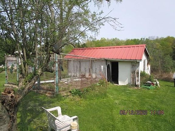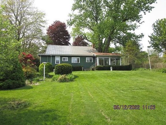 Spacious Cape Cod dwelling on a level acre lot - home features a large sunporch overlooking the rear landscaped yard with fish pond - front of the home has a year round enclosed porch that could be a den or office - super-sized living room with fireplace and formal dining area - eat-in kitchen is fully equipped with appliances and small dining area - one bedroom and full bath on first floor - walk-up to dormer where there are two more large bedrooms. This property includes two outbuildings - one housed raising pheasants and includes cages and the other a shed that has attached dog runs. Property extends past the sheds into the woods and a small creek. This home has a very comfortable space and can be a favorite place to make memories!