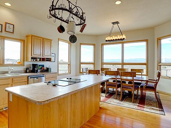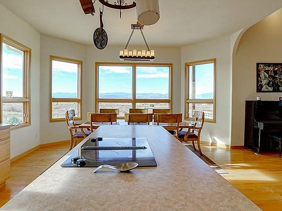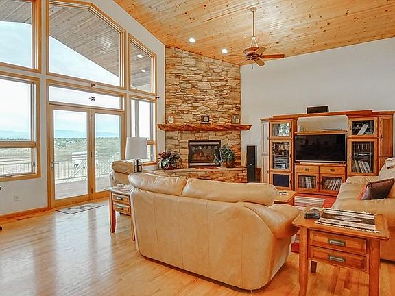 SELLER OFFERING A $25,000 BUY DOWN or other needs/wants buyer may have. New stainless steel appliances and fresh stain on deck. Remarkable home pairs expansive interior spaces with a rare degree of privacy. Many custom features like the wood-paneled ceiling over porch, foyer, living room and deck; rock pillars inside and out, rock wall w/ handmade mantel, two fireplaces, two living rooms, and a laundry room on each level. Amazing 180 view of mountains and arroyos from rear will strike you upon entry, with a hand-crafted elk antler chandelier above. Lower level feels like another whole house with great mountain views through lower level windows. Huge front patio w/ Pike's Peak view & rear two-story deck—gorgeous sunsets over the mountains! Master suite, second bedroom & bath on main level. 3 large bedrooms (2 en suite), kitchenette, 2 walk-closets on lower level. Steel panel corrals with sturdy 12x20 gated barn, easily expanded to include stalls & storage, great automatic horse waterer. 370' frontage on wildlife area for your hiking, riding, or mountain biking explorations!
