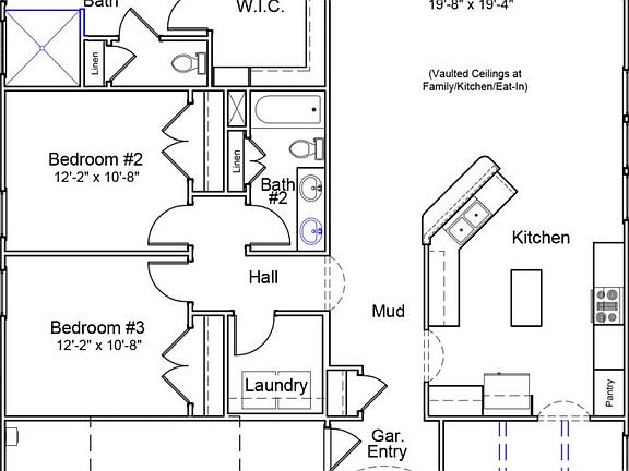 The Fairchild offers single level living with three bedrooms, two baths, and a formal dining room. An arched opening leads from the foyer to the dining room with arched access to a gourmet kitchen featuring gray cabinets complete with a super pantry, work island, and breakfast bar. The vaulted family room with a cozy gas fireplace opens to a large covered porch overlooking the private back yard. The spacious master suite has direct access to the porch and features a boxed ceiling, walk-in closet, and bathroom with huge 60" x 60" tile shower, granite double vanity, enclosed water closet, and linen closet. The two secondary bedrooms share a large hall bath with tile flooring, a granite double vanity, and a linen closet.
