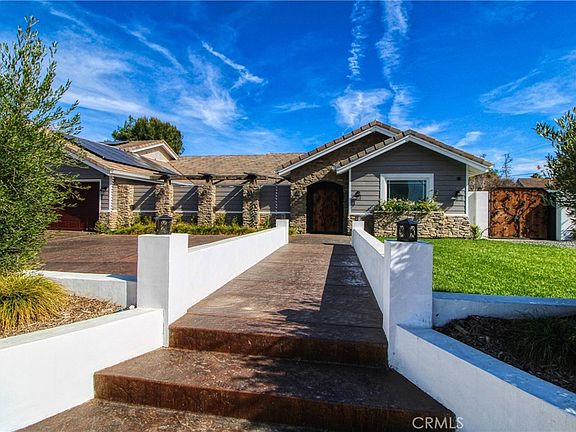 Welcome to this unique custom single-level estate, a true sanctuary for luxury and comfort. This immaculate property boasts numerous stunning features, designed to exceed your expectations. Enter to the sounds of tranquility as you are greeted with a 3000 gallon pond and waterfall. Double doors lead you in the wide open space of natural light. Great for entertaining with this chef style kitchen boasting stainless steel commercial appliances and unique wood cabinetry in two shades that complement the quartz and granite tops. Adorned with real wood flooring in the main areas with stone flooring in the bathroom and plush carpeting in the bedrooms.This estate offers an impressive six bedrooms, providing ample space for relaxation and privacy. The primary suite provides access to the rear entertainment area.Ceiling fans throughout and closet organizers. Dedicated office space overlooking the courtyard. Enjoy cinematic experiences from the convenience of your own home with a separate home theater, perfect for cozy movie nights or entertaining guests.Separate quarters,with private access, visiting family or guests can enjoy their own private space, complete with comfort and independence,offering two spacious bedrooms and large sitting area and dining area.Revel in the comfort of four and a half bathrooms, each exquisitely designed with high-quality fixtures and finishes.Relax in garden filled with a variety of fruit trees and mature vegetation.For those with recreational vehicles or boat enthusiasts, take advantage of the convenient RV access, allowing for secure parking and easy accessibility.Savor the pleasure of your very own private vineyard, where you can indulge in viticulture and delight in the fruits of your labor. A most unique use of space is offered in the very large 1500 approx. SQ.Ft. attic provides abundant storage space, allowing you to keep possessions organized and easily accessible.This property has been thoughtfully enhanced with numerous upgrades throughout, ensuring the highest level of modern living. Parking is numerous featuring a 6 car garage and ample driveway for more vehicles.This estate is equipped with a full solar system, sound system throughout the home, and a nine camera security system Experience the epitome of luxury living with this extraordinary single-level estate, where every detail has been carefully curated to exceed your expectations. Don't miss the opportunity to call this magnificent property your own.