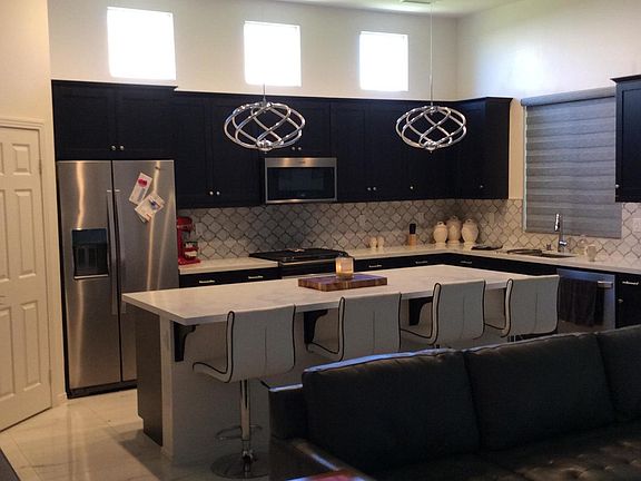 This is a gorgeous 55+ over development. So many upgrades throughout. The floors are porcelain glazed all through the home. Gorgeous marble backsplash in the kitchen. Beautiful Quartz countertops. The cabinets are all updated and self closing. All stainless steel appliances with a convection, smart microwave. Ceiling fans throughout , plenty of recessed lighting. The bathrooms are all upgraded with quartz countertops, custom showers and beautiful tile.The pool& Spa equipment is A+. Cool off with 12 jets and a water chiller for the pool!! Perfect for the desert summers. yard is fully landscaped. HOA takes care of front yard. Artificial grass in the back yard. So easy.2 car garage with 2 cabinets and a freezer.Some furnishings are included. Some for sale outside of escrow. This is a MUST SEE!HOA is $225 includes Pool, spa, gym, sports courts, gated dog park and gorgeous clubhouse.