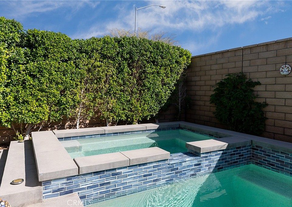 One of the standout features of this property is the private outdoor sanctuary. A sparkling pool and soothing spa beckon on warm desert days, offering a serene escape where you can relax, unwind, and soak in the breathtaking desert views. The beautifully landscaped backyard provides a serene setting for outdoor dining, lounging, and entertaining.