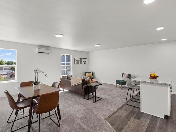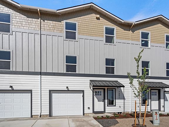 Step into contemporary elegance with this stunning new townhome by Olaf & Company, LLC. This move-in-ready residence offers 1,363 sq. ft. of modern living space. It features three bedrooms, including a convenient ground-floor bedroom, and two luxurious upper-floor bedrooms with their own ensuites, providing both comfort and privacy. The middle floor boasts a spacious kitchen with granite countertops and upgraded cabinets, ideal for culinary enthusiasts. The open-concept living and dining areas are designed for both relaxation and entertaining. The upper floor includes washer and dryer hookups for added convenience. Enjoy breathtaking views from the top floors and benefit from additional features such as an oversized single-car garage, a fully fenced backyard, Milgard windows, and 100% Hardie Siding. Practical entry area storage enhances functionality. An Energy Performance Score will be provided upon completion. One of only three left, come get it before it's gone!