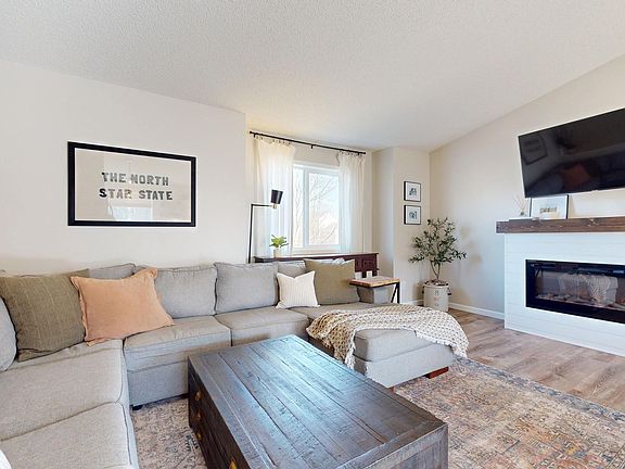 Beautifully updated home, with a spacious foyer that welcomes you to the vaulted main floor, filled with natural light. The kitchen boasts sleek quartz countertops, a stylish tiled backspash, floating wood shelves and SS appliances. Main level features three comfortable bedrooms, luxury vinyl plank flooring in the main living areas. Inviting electric fireplace in the living room.