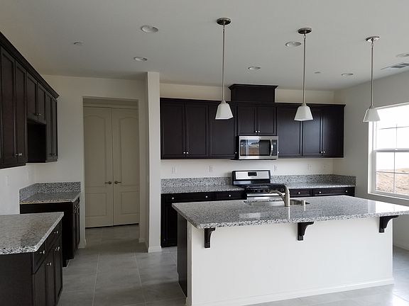 beautiful French style home with wrap around porch. Home features 9ft ceilings and 8ft interior doors downstairs. As you walk in you will be greeted with an open foyer leading you into the either the formal dining room, office/den or great room. The home features modern tile flooring and dark java cabinets complete with granite in the kitchen. you will enjoy the the open floor plan leading outside to your private yard no back neighbors. upstairs the loft is prewired for a flat panel television and the windows face west for the gorgeous sunsets. as you walk into your oversized master bedroom you will enjoy the fantastic walk in closet and ample bathroom which features a seperate tub and shower and double sinks at the vanity. the secondary bedrooms will include walk in closets and spacious wall space for all the furniture. front yard landscaping is very low maintenance with the drought resistant landscaping and drip irrigation and best of all you will save plenty of money with the included owned solar system and tankless water heater. finally you can rest assure you are in the best care with the 10year limited home warranty. PHOTO IS A RENDERING OF THE MODEL; MORE PHOTOS TO FOLLOW