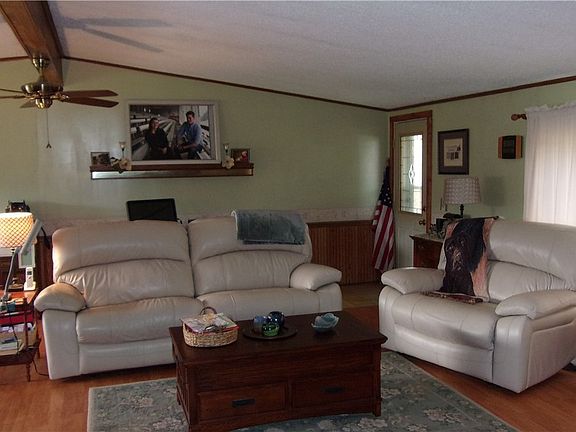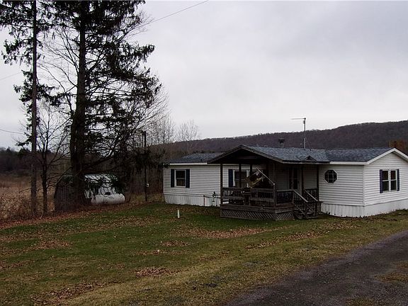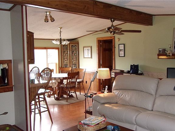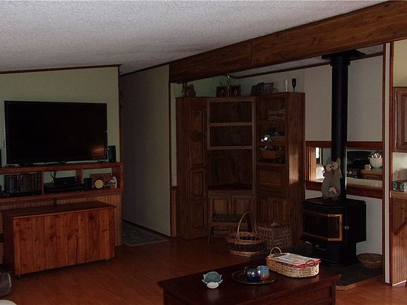 Nestle on 10 Acres, this 3 bedroom 2 bathroom home offers quiet serenity. Relax on the large rear deck and overlook the pond or take cover from the elements on the large covered front porch. Easy maintenance with wood look laminate flooring inside and vinyl siding outside. Master bedroom remodel with dual vanity sinks and walk in shower. This would be a great year-round home or vacation get-a-way.