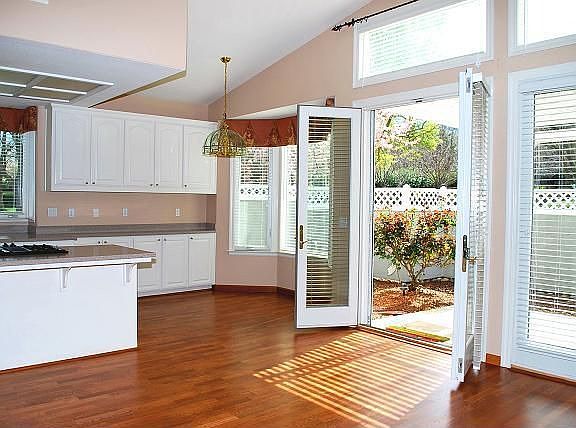 Fantastic floor plan with 3 large bedrooms and 3 full baths. Two master suites with private baths. Enjoy 2500 (-+) sq ft of living space all on one level. Chefs kitchen has corian counters, some newer appliances, island with Jenn-air gas cooktop & a spacious breakfast area, Gleaming hardwood floors, new plush carpets and pad, new Anderson French doors, vaulted ceilings and numerous windows allowing lots of natural light. Other features include, an alarm system, soft water system, views of the ridge and green belt. HOA includes 2 pools & 2 tennis courts.