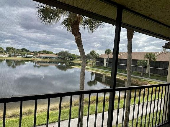 Relax and dine on your large (22 ft) balcony overlooking the lake and community pool. You will enjoy large lake views from the bedroom and living room of this lightly used unit. Upgraded, good condition Berber carpet in the living and dining room. Tile flooring in foyer and hallways. Eat in kitchen, large bedrooms. Storage closet on balcony. Add your own personal touches. A/C 2018. New roof. Over 55 community. One buyer must have 700 minimum credit score.