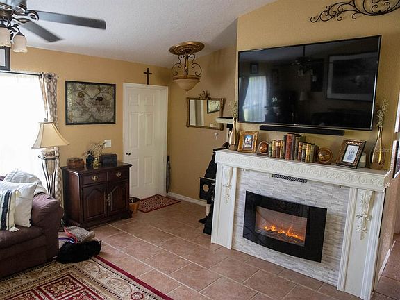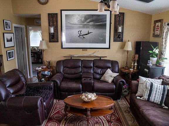 ADORABLE 3BD, 2 BA, 2 car garage home! Has been recently updated with newer exterior and interior paint, new laminate flooring in the bedrooms, epoxied counter tops, newer A/C and more! Seller will be leaving for the convenience of the buyers... electric fireplace, hurricane shutters, the ring doorbell, gas grill and gazebo, outdoor table with umbrellas, cabinet in guest bathroom, white desk and cabinets in office, pot rack in kitchen, washer & dryer, garage work benches.
