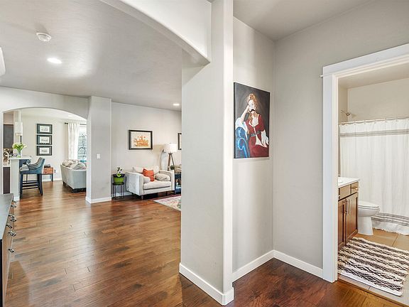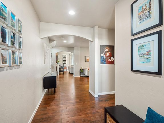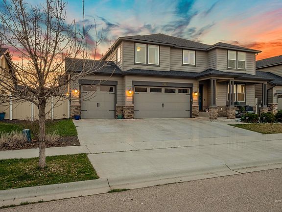 Super functional floor plan with 6 bedrooms or 4 plus bonus room and office. Main level features a full bedroom and bathroom. Open floor plan with beautiful engineered wood floors. Main level provides a family room and den/formal dining room. Kitchen has quartz counters, island, breakfast bar, stainless steel appliances, gas range and large walk in pantry. Huge Primary suite has dual sinks, quartz counters, soaker tub, tile shower and floors and walk in closet. Laundry room has a sink and cabinets. Relaxing outdoor space with covered extended patio, full vinyl fencing and auto sprinklers. Community pool, paths and park. Short distance to Oregon Trail and other nearby hiking trails, Micron, airport and freeway.