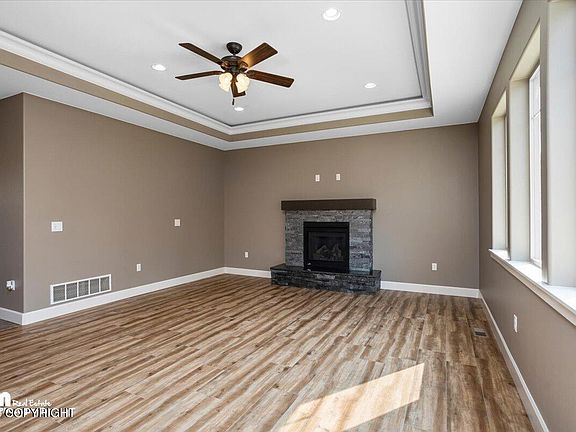 This home shines like new! New flooring throughout! Cozy up to the beautiful stone & granite fireplace or relax in your master suite soaker tub after a long day. This open floor plan features a custom kitchen with granite countertops, stainless steel appliances and a large pantry. Sink & dishwasher in the large stunning center island. This home is beautifully landscaped with a fenced yard forprivacy and space to entertain. Oversized 2-car heated garage with tandem storage for all your Alaskan toys, extended paved asphalt driveway & gravel pad for RV or boat parking. Home is plumbed for Central Vacuum system, downstairs office/den with closet could be used as a 4th bedroom - home has 3 bedroom septic.