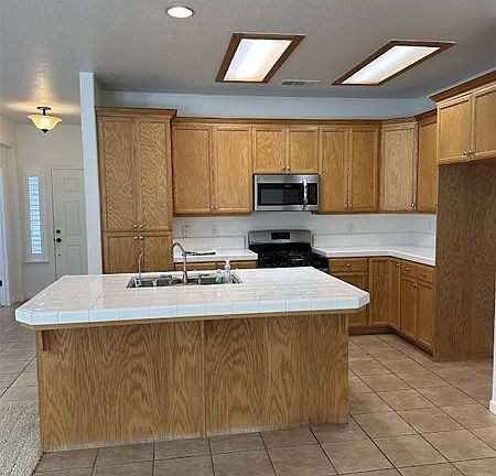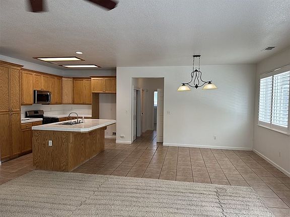Single story 4 bedroom 2 bath home with over 2000 SQ. FT. of living space. Kitchen with tile counter tops, dishwasher, microwave, gas range and dining bar. Large great room with a gas fireplace. Guest bathroom with double sinks, tile floors with a shower tub combo. Large master bedroom with door access to the covered patio. Master bath with double sinks, Jacuzzi tub and separate shower. All windows with vinyl shutters. Large covered patio. Storage shed at backyard. Front and back yard landscaped. Inside laundry hook ups. 3 car garage with openers. New laminate flooring installed throughout! 1 pet negotiable, please see application for breed restrictions. Picture of pet to be included with your application.