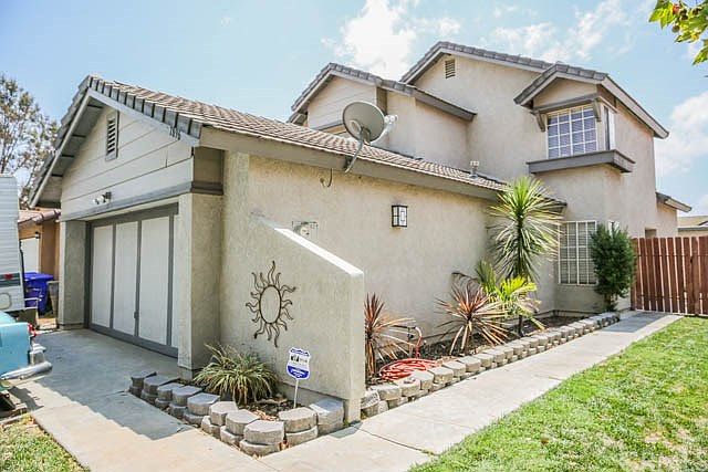 WITH NO HOA, AND NO MELLA ROOS, THIS IS A STEAL!! . INSIDE YOU WILL FIND 3 BEDROOMS WITH 3 FULL BATHROOMS , IN WHICH 1 BED/FULL BATH IS ON THE FIRST LEVEL. THE DOWNSTAIRS IS PARTIALLY CARPETED WITH FIREPLACE IN THE FAMILY ROOM WITH ABUNDANCE OF NATURAL LIGHT AND BEAUTIFUL CERMAIC TILE LEADS TO THE *UPGRADED DOWNSTAIRS BATHROOM. THE KITCHEN IS BEAUTIFULLY UPGRADED WITH GRANITE COUNTERTOPS, MOCHA COLORED CABINETS, RECESSED LIGHTING, AND ALL APPLIANCES INCLUDED! AS YOU WALK UPSTAIRS, ACROSS THE SUSPENDED BRIDGE, THE SECOND FULL BATHROOM IS *UPGRADED, AND THE MASTER SUITE HAS *UPGRADED JACK-N-JILL SINKS AND HUGE WALK-IN CLOSET!! THE BACKYARD FEATURES WOOD FENCING BORDERS, COVERED PATIO, AND PLENTY OF GRASS FOR YOUR LITTLE ONES TO PLAY! NOT TO MENTION, ADDITIONAL STORAGE SHED FOR YOUR TOOLS AND TOYS! THE 2 CAR GARAGE HAS MORE THAN ENOUGH SPACE FOR VEHICLES, AND INCLUDES OVERHEAD STORAGE. THIS HOME IS ALSO NEAR FWY ACCESS, ELEMENTARY SCHOOLS, PARKS, MARKETS, AND A MOVIE THEATER!! *Agents please see remarks