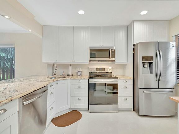 Move-in ready 2BR/2BA ground-floor corner condo with lake views in the gated & manned, membership-optional country club of Boca Lago. Fully remodeled with 24'' diagonal marble tile, crown molding throughout, open concept kitchen with quartz counters, white cabinetry, tile backsplash, and stainless-steel appliances. Updated bathrooms feature frameless showers with shower panels and body jets. Also includes no popcorn ceilings, solid wood doors throughout, built-in closets, total storm protection (impact windows/sliders/door), new window treatments, full size Samsung W/D, and newer A/C & tankless water heater (both 2020). Enjoy an enclosed lakefront patio + outdoor side patio just steps to pool & assigned parking. 2024 roof, strong reserves & no assessments. Offered partially furnished. PROPERTY FEATURES: