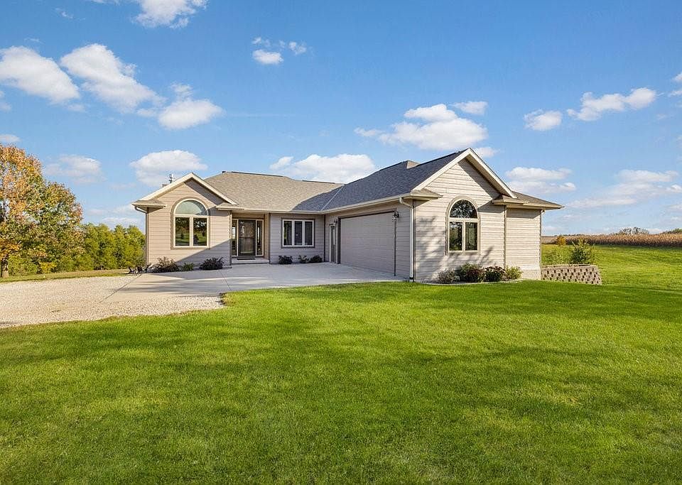 Don't miss the opportunity to see this acreage oasis! Located only 35 minutes outside of Des Moines and Ankeny, this beautifully updated walkout ranch is located on 8 acres of rolling hills, open pastures, and wooded views. Enjoy the wooded trails for thrill seeking ATV fun, horseback riding, or a casual stroll through the wilderness - all from your backyard! Main level includes a living room with a wood burning fireplace, a den/office, kitchen with SS appliances, 1 baths, 2 bedrooms, a master suite, and main level laundry. Walkout lower level includes a family room with a gas fireplace, dry bar with adjacent kitchenette, 2 bedrooms, a full bath, and custom hall walk-in closet. Custom built home by Kendall Moorman features 2x6 construction, geothermal, 9' main level ceilings and 5 panel solid oak doors with many other updates throughout. Detached and insulated 30x36 garage built in 2017. Watch for wildlife or gaze at the stars from the deck or one of the 2 patios!
