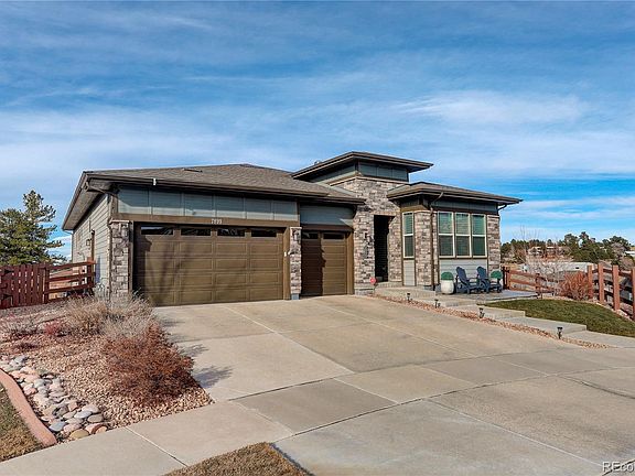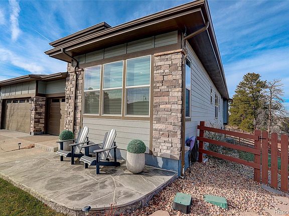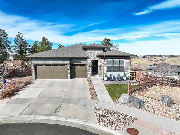 Welcome to this stunning Shea Home, nestled on a prestigious 1/3-acre cul-de-sac lot in the highly sought-after Whispering Pines neighborhood. This ranch-style home with a walkout finished basement offers breathtaking mountain views and an enchanting private backyard surrounded by lush pine trees.