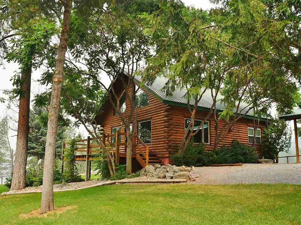 Exceptional, private, end-of-the-road setting for custom log home on 34 acres of timber, pasture, and views of mountains and beautiful Hatch Lake. Excellent outbuildings, custom-built shop, and fully fenced and cross-fenced making it ready for horses and livestock. Home affords soaring vaulted ceiling, lots of natural wood finish, great interior light and wrap-around deck to take in the views. Loft, full walk-out basement with kitchenette, and a 3-car carport with finished storage, gives you options.