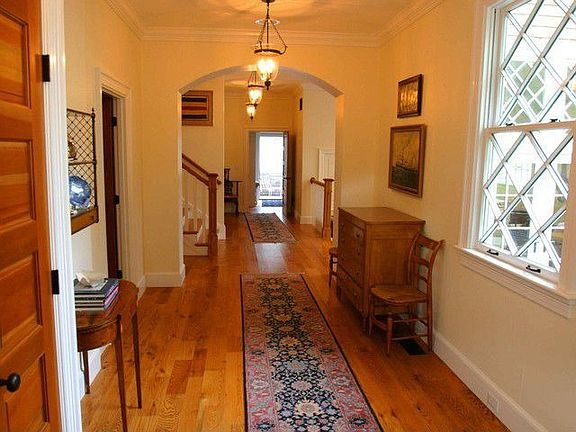 The Bigelow Carriage House, located in The Point, is an early commission of Charles McKim. McKim's work includes the original Penn Station, the West Wing of the White House, Newport's Tennis Hall of Fame and numerous other national landmarks. McKim, Mead and White are recognized for making important contributions to American architecture and credited for creating "the shingled cottage vernacular" that defines the homes of coastal New England. The shingled exterior of the home is nearly identical to its original design and is surrounded by climbing roses and flowers. The interior has been completely remodeled and features sunny rooms, top of the line finishes and open, well-designed spaces. Rooms on the main floor fan off a wide corridor. The living room has a stone fireplace, 12 foot coffered ceilings and opens to a professionally landscaped patio that serves as private outdoor living space. The custom kitchen was designed for function and living, a blend of top-of-the-line equipment and cabinetry with copper and stone finishes. A study with fireplace, powder room and separate dining room complete the first floor. There are three ensuite bedrooms on the second floor including the large master suite with French doors to a sunny outdoor terrace. The third floor is light filled from a windowed turret and features two additional bedrooms, one queen plus and a custom mahogany ship's bunk room and bath. Walk to all that Newport has to offer from this lovely, turn-key home.