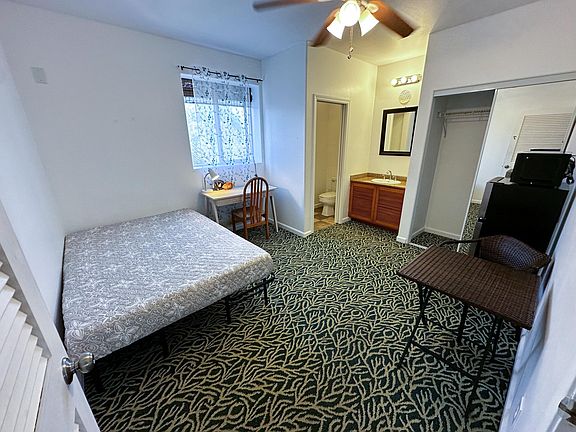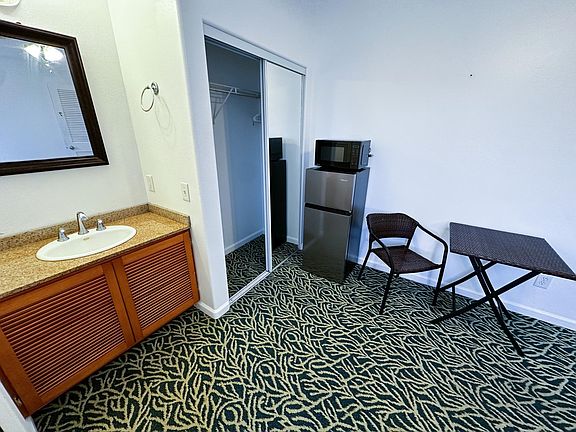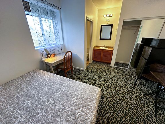 Enjoy comfort in this clean private room with your own ensuite toilet and sink. Located in the cool, lush landscapes of Holualoa, this room includes a refrigerator and microwave for your convenience. The unit is furnished with what you see in the photos. You'll also have access to a fully-equipped shared kitchen just outside your door. Our property features coin-operated laundry facilities and two shared bathrooms on the second floor for showering. Relax and unwind on our spacious patio with stunning ocean views, available for all tenants. A parking stall is also included. Monthly rent covers utilities such as electricity, water, gas, and internet. A security deposit equal to one month's rent is required. This unit is only available for one person. Leases up to 6 months are okay