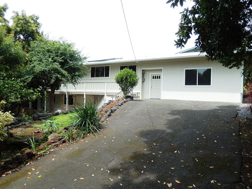 This charming ranch style home is situated on the slopes of Mauna Loa on the Big Island of Hawai'i, just 20 minutes south of Kailua-Kona. This solid house is conveniently located to shopping and eateries and is situated at a perfect, cool elevation. The main living area is bright and spacious with gorgeous refinished oak floors throughout the upper level which has a wrap around porch with views of Kailua-Kona and the coastline. There are beautiful granite countertops throughout. The lower level private entry bonus space is tiled and opens to a private fenced yard with fabulous garden beds, a built-in barbecue, patio and a plentiful fruit orchard with 18 different species, including Sharwell and Kahalu'u avocados. A large, versatile animal enclosure is also included. There is an enclosed carport for additional living space and a tiled steam room with dual shower heads. This home offers abundant storage and is equipped with solar hot water. This home has an abundance of natural light. The spacious kitchen faces the street and overlooks the private fenced yard, garden and fruit orchard. The lower level private entry offers many options from hosting friends and family to providing income potential. This home is perfectly situated, convenient to both North and South Kona with cooler temperatures and welcomed rainfall for the gardens. Honalo and Kainaliu, two small towns with restaurants, cafes, galleries and shops are in walking distance. Local beaches are a short drive away. This sweet property offers all the best for island living on the sunny west side of Hawai'i.