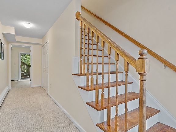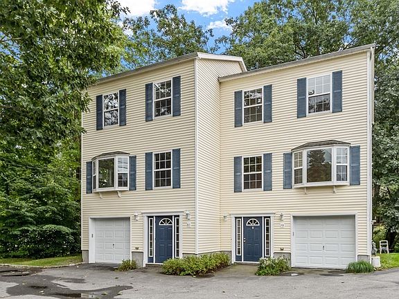 Welcome to this spacious half-duplex with 3 levels of living space. Freshly painted and waiting for its next owners. This unit boasts 3 bedrooms, 1 1/2 bathrooms and 1600 square feet of space. Enter at ground level to your large 1 car garage. This level has extra bonus space for a home office or recreation room with large slider that walks out to the back. Head upstairs to your main floor with spacious kitchen with stainless steel appliances, dining room, 1/2 bath and large living room with bay window. The dining room walks out to the newly added trex deck for outside entertaining and grilling. The second level hosts the main bedroom with two closets and access to the main bathroom. Two additional bedrooms and laundry complete the second floor. Enjoy the view out your back to the Assabet River and Assabet River Bike/Walking trails. With low HOA fees, easy access to conservation land and close to downtown, come be part of the vibrant town of Maynard with its many shops and dining.