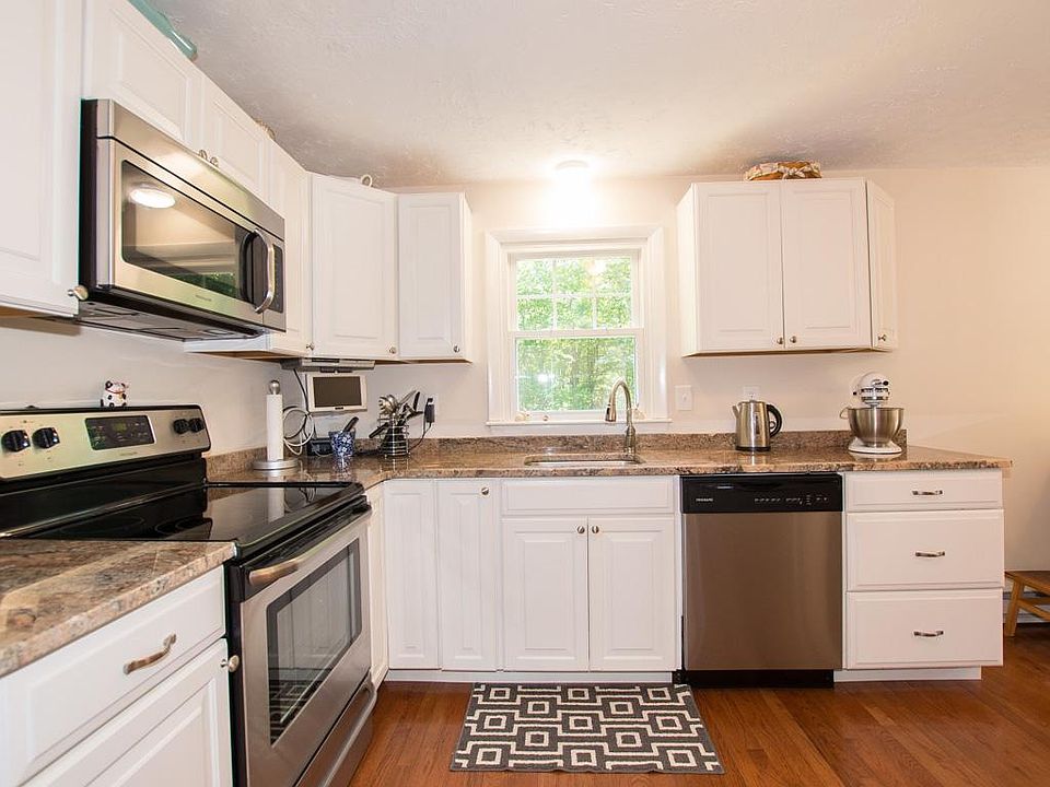 Fantastic location! Large town house 6 rooms, 3 bed, 1.5 baths, kitchen, and bath are all updated. Stainless steel appliances with granite counter tops and hardwood floors in the first floor. Large deck off the dining room for entertaining overlooking a private yard. Private driveway and off street parking. Full basement walkout for storage, washer, and dryer hookup in lower level. Close Access to 95, 495, train station to Boston, Foxboro, Easton, and Sharon. Credit and background check, references, first month, last month, and a security deposit. No pets. Call for an appointment 401-864-0337. Price includes: Water & Sewer Trash removal.