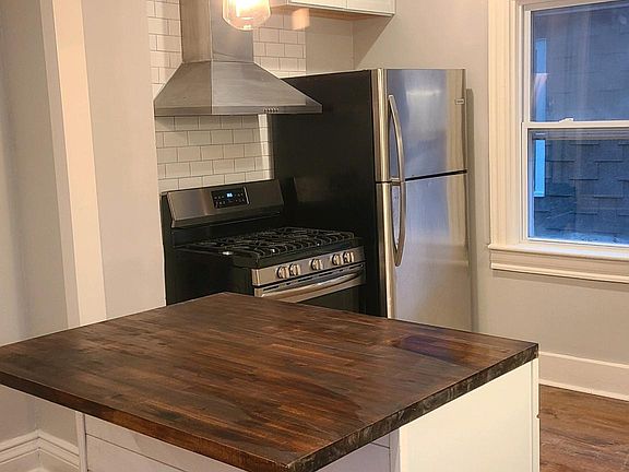 Fully renovated luxurious apartment with over 1,250 square feet, two bedrooms, 2 bathrooms to fit the remote work life! The first floor apartment has a brand new first floor front deck to utilize for the summer, which will be stained and painted this summer! Construction just finished last year in the entire apartment. New remodeled bathrooms, remodeled kitchen with new countertops, new sink with GARBAGE DISPOSAL, new fridge, new high-end GAS RANGE, new hood range, new cabinets, new lighting, new electric and plumbing. The apartment boasts new windows throughout and beautiful CROWN MOLDING, newly restored and refinished HARDWOOD floors on the first floor, and freshly painted throughout. The apartment also comes with 2 off-street parking spaces in a shared driveway that was just remilled. Paving to come next spring. Brand new thermostat and high efficiency gas furnace. Owner provided washer and dryer in the basement. New siding and recently done exterior paint job! Please apply for preliminary approval to set up a showing. Tenant pays gas and electric. Owner pays water and refuse. No smoking. Pets ok. One off-street parking space. One year minimum to start 6/1 or earlier. Must carry renters insurance listing owner as additionally insured upon move-in and key delivery. Monthly income must be 3x rent, 90%+ credit repayment history, and clean criminal background history check is required. Pet deposit ($200 ) and monthly pet rent ($50) per pet applies if applicable. First month rent and security deposit secures it with approved application! Looking for a qualified applicant that is ready ASAP. Please apply for preliminary approval to set up a showing.