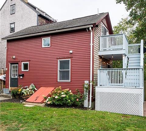 Welcome home to this charming 2 bedroom condo, in the desirable Yachting Village neighborhood, just steps from Thames Street, restaurants, shops and the Newport Harbor. This is your opportunity to own a charming Newport home built in 1870. With an upside down floorplan, the first floor has the two bedrooms facing the back of the property for privacy, and the full bathroom. Upstairs you will find your main living space with sliding doors out to your deck for morning coffee with stairs leading to your patio. Your open kitchen with breakfast nook makes a desirable set up for cooking and entertaining friends or family. The property is tucked back from Bacheller street for further privacy with beautiful flowers and a low-profile shed. The free-standing condo has low condo fees, a freshly painted deck and side tiki bar space for entertaining and shared grass space. 9 Bacheller is makes an excellent vacation or second home option.