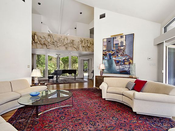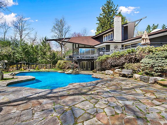 The perfect hideaway with southern facing, sun drenched interiors and an Armand Benedek designed pool overlooking serene Gifford Lake. Built in the spirit of Frank Lloyd Wright homes, designed by architect Roy Johnson, this home is a delight for the eyes with views from common living spaces set towards the pool and lake. Flying overhead beams with floor to ceiling windows, angular walls and symmetric rooms provide exciting architectural elements. A pampering master suite with private deck, his/hers walk-in closets and a spacious master bath with oversized jetted tub is located on the first floor. Two bedrooms with a bath are on the upper level and two additional bedrooms and a bath on the lower level. Whether as your country retreat or your year-round home, this exceptional opportunity, on 2 verdant acres, is located minutes to the town of Armonk, close to major highways and a 45 minute drive to NYC.