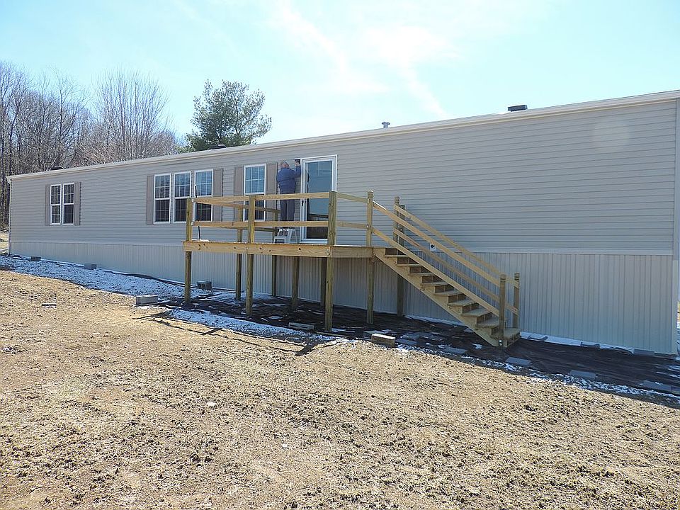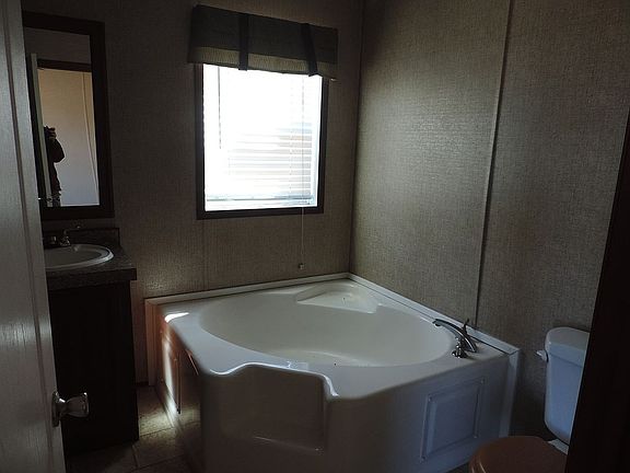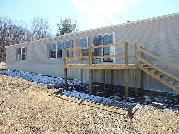 Single wide 2011 Clayton Mobile home for sale. Lot can be rented for up to one year with signed lease, $250/month includes mowing/lawn care. No snow removal. This is a spacious single wide, 16x76, vinyl siding, 2x6 drywall built, with open concept living, kitchen and dining area. Separate laundry area near back door. Large and spacious master bedroom with ensuite bath, double sinks, soaking tub and stand alone shower. Second bedroom almost as spacious, lots of light double windows and second full bathroom next door. Third bedroom is smaller, but would be great for small children or as an office or hobby room. Electric efficient furnace, all appliances convey - including dishwasher, electric stove, refrigerator, digital antenna with 200 mile range and window AC unit. Central air can be installed. Neutral color palette. Front porch deck and stairs will convey, along with underpinning and concrete pillar blocks. New laminate wood flooring in 2nd bedroom, and in kitchen/dining and laundry areas. Would make a great starter home! Viewing by appointment only.