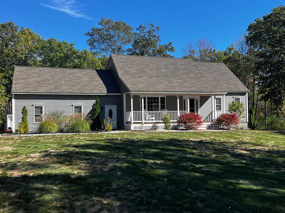 Located in the upscale neighborhood of Halycon Estates, this private, meticulously maintained open concept home is move in ready. Upon entering through the front door your eyes will immediately be drawn to the cathedral ceiling in the living room and the beautiful hickory stairs leading up to the second floor that overlooks the first. The first floor has plenty of space to entertain, gather with friends and family and includes first floor living with the master ensuite located just beyond the dining room. The master ensuite features an expansive walk-in closet along with an oversized tub/shower combo. Off the kitchen is a set of sliding doors that lead to a private back deck for privacy and enjoyment. Three additional rooms and full bathroom upstairs with natural sunlight. Spacious 2 car garage with generator hook up and full basement with plenty walk out entry provides plenty of storage and workspace. The detached barn is an added bonus - ready for a welder, car enthusiast or do it yourselfer and includes full storage above. Nestled on almost 6 acres where luxury and rural meet and room to expand by adding an ADU with town approval!
