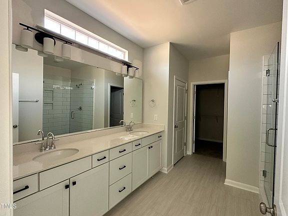 - Double Vanity, Eat-in Kitchen, Entrance Foyer, High Ceilings, Master Downstairs, Shower Only, Smooth Ceilings, Walk-In Closet(s), Walk-In Shower