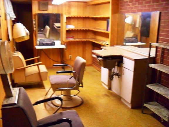 House very open. Convenient location. May be hardwood floors under carpet. Family room in basement. Fireplace no longer in use. Former beauty shop. Sold As-Is. Dryer does not vent outside. Sq.ft. lot size est.