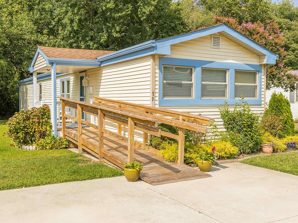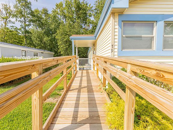 Desirable Bayshore Woods 52+ community. Cute 2 bed and 2 bath that's move-in ready. Large, attached sunroom, with a spacious closet that leads out to a cozy back patio area. Backyard shed for additional storage. Front deck with custom ramp. Adorable rear yard that backs up to a nature preserve. Private and quiet neighborhood. Monthly Association fee is $100.00 which covers maintenance of common areas, water and sewer. Needs new roof. Estimate in Assoc. Docs. Being sold "as is". Owner has title and deed.