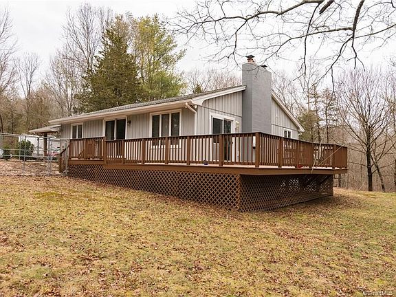 Tucked away on a private , wooded lot, this home is the perfect retreat. An inviting entryway brings you into this cozy home. Open floor plan makes this spacious kitchen and dining combo easy for entertaining. Kitchen has tons of workspace and cabinetry. Look out the sliding doors to enjoy wildlife who may be passing through. Woodstove in fireplace heats the area nicely. Bedrooms and bathroom on first floor. 3rd bedroom potential in lower level. Storage room with shelving. Additional woodstove, workbench, and laundry are all features to be found in the walkout basement. Enjoy the wrap around deck that has capability of holding a hot tub. Spectacular Brooklyn location convenient to school and major routes.