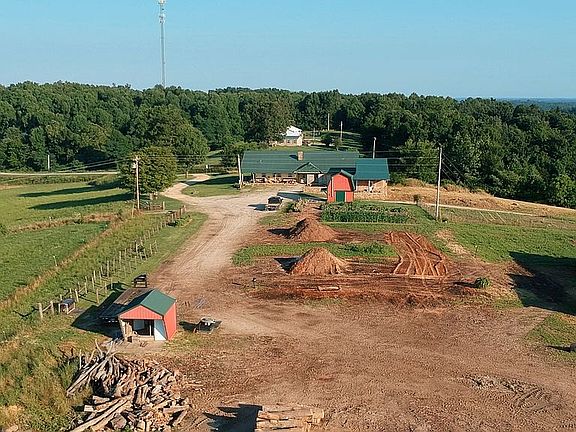 Rare opportunity! This certified organic property has not changed hands often over the years. The setting is private yet there is easy access to the main road. Ridge Acres is rooted deep, as it saddles historic Bruner Ridge giving a panoramic view. This 140 acre ( more or less) farm is on Ridge Lane just off of State Route 144 where it crosses the local north to south continental divide. Visitors and customers to the farm describe the commanding setting as breathtaking with a million dollar view. Hardinsburg can be seen to the south, Louisville 50 miles to the east, Owensboro 40 miles to the west and the northern view is across the Ohio river to the hills of Southern Indiana. There is abundant water with natural springs, five ponds, and one lake scattered across the flowing topography. The ridge top setting produces a micro climate extending the growing season four to six weeks in the fall. With an almost constant air flow crossing the ridge providing natural ventilation. The spacious dwelling is constructed of insulated concrete forms (ICF's building system) on all exterior walls. The entire home is heated by one wood burning fireplace. The 2,400 sq.ft. house can be entered at ground level (without steps) on the first floor to all entrances from the wrap-around porch or at the basement entrance. Huge kitchen with $50,000 worth of solid oak fronts with poplar shell and shelves cabinets (lumber came from the farm) and heated floor.