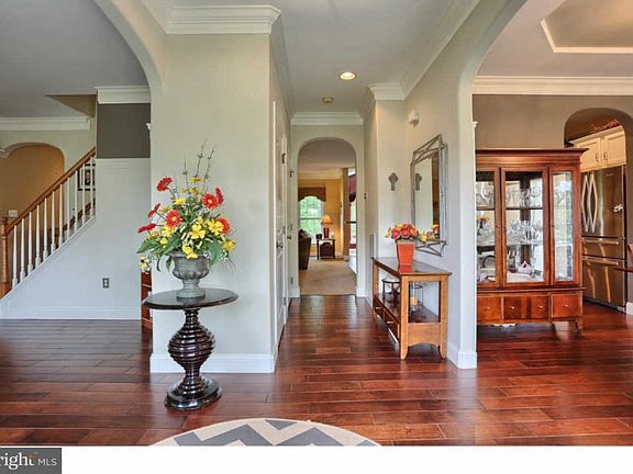 Welcome home to this incredible and beautifully upgraded Hidden Farm home, located minutes from the PA Turnpike. Enter into the foyer, where you will be greeted by beautiful wide-plank hardwood flooring, enjoy the rounded drywall and archways throughout the first floor. Sellers have added extensive crown molding and wainscoting, as well as a tray ceiling in the dining room. Every closet has been upgraded and customized (coat closet, pantry, all bedrooms & laundry). First floor custom-painted powder room. Lots of great storage found throughout this home. 1st floor features office with french doors, large family room with stone-to-ceiling gas fireplace that opens to bright kitchen loaded with natural light. The kitchen has a corian breakfast bar and walk-in pantry, also featuring a breakfast room that has skylights and cathedral ceiling. Laundry room is HUGE and includes 3 custom cubbies, as well as cabinets over the washer/dryer. Intercom and speakers found in office, family room, kitchen, and basement. On the second floor you will find a Master Bedroom with cathedral ceiling, master bath with double sinks, soaking tub with jacuzzi jets, and skylight. Three additional ample-size bedrooms, a custom painted hall bath with double sinks and a loft round out this floor. Downstairs, sellers have recently finished the basement and WOW it's AMAZING! Great for entertaining. Local barnwood was used for stair railing. Full, granite kitchen includes stainless steel oven, dishwasher and fridge. Ample sized additional room could be used as an exercise or playroom or 5th bedroom. Built in high-end speakers with surround sound, two granite bars, one in the bar/kitchen and one that overlooks basement rec. room. Walk out the sliding glass door into your backyard. On main floor, large deck overlooks 1.41 acre wooded and fenced backyard, which includes a custom shed with electric. Oversized driveway yields plenty of room for basketball and extra parking. Rock wall and fire pit makes the backyard great for entertaining. Low Taxes! This home has it ALL!
