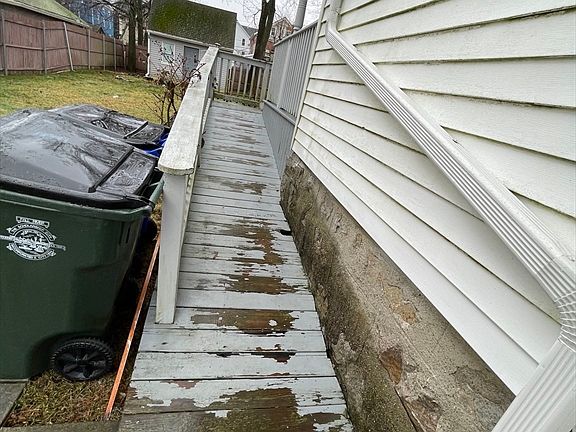 Spacious 1 family home sitting on a large fenced in yard with a large storage shed and off street parking. The sizable front porch and 2 back decks give this home great flow making it an ideal space for entertaining. The interior is freshly painted and the hardwood floors have just been beautifully restored along with the front staircase keeping this homes original charm and character in tack. There are 2 full modern bathrooms located one on each floor. Sellers are willing to paint the decks and railings to make the home FHA Compliant. All offers are due in to atty by Wednesday 2/21 @ 5PM.