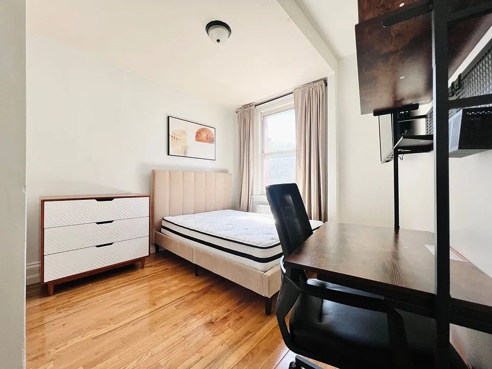 Carlton Ave #359 (1 block to Fort Greene Park, in a 3 bedroom) - Bright bedroom with high ceiling in prime Fort Greene, 1 block to Fort Greene Park, 10 minute walk to Downtown Brooklyn, by Myrtle Avenue and Carlton Ave. Room has an HD TV, dresser, desk, chair, Wifi and large closet. - 14 min walk to B, D, N, Q, R, W, G, 2, 3, 4, 5 trains, 23 min to Manhattan, 3 min walk to Fort Greene Park. Experience Brooklyn's second best park. - Myrtle Avenue Avenue are walkers paradise, renowned for their hip eateries, mom-and-pop shops. - We are looking for someone who is clean, responsible with good energy. - Utilities are $165 per month (Internet, gas, heat, hot water). - Restaurants, cafes, bars, salons are 1 - 3 minute walk, you are in the center of a popping neighborhood. - You have backyard access - There is a one-time room cleaning and administration cost of $125 - Minimum 1 month - Maximum 1 year - No Smoking Inside The Unit - Not Pets Allowed - Utilities are $165 per month. - There is a one-time room cleaning and administration cost of $125