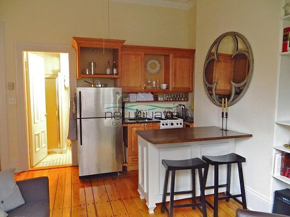 Large studio in a quiet brownstone steps to Back Bay Station, the South End, and on a picturesque tree-lined South End Street. This apartment features an alcove, hardwood floors and stainless steel appliances, high ceilings, bay windows, and in building laundry.