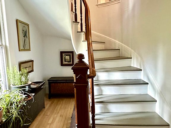 Set on .36 manicured and landscaped acres on picturesque Cheney Street in Newport, NH, this recently refreshed, 5 bedroom, 2 bath New Englander is only a 2 minute walk from downtown. Boasting high ceilings and newly refinished floors throughout, the home is ready to go. With new paint inside & out, and a spectacular 3rd floor Classroom/Office/Craft room (for those days when the kids are home) the property combines old world craftsmanship with modern amenities. Stately bay windows, curved arches, sophisticated moldings and original maple floors combine with a modern eat in kitchen, state of the art heating system and generous storage areas to create the best of both worlds. The attached barn is a blast from the past giving you massive storage but could easily be converted into additional living space. Stately coffered beams in the sitting room and an elegant circular staircase are highlights of the home's exquisite craftsmanship. The Richards Library and Arts Center, summer farmers market, restaurants and coffee shops are just steps away from your front door. Only 15 minutes to Lake Sunapee, the 75 mile Sunapee-Ragged-Kearsarge Greenway trail network and Vail's Mount Sunapee Ski resort. 30 minutes to Dartmouth Hitchcock Medical Center. Open House Saturday Oct 5th 10am until Noon
