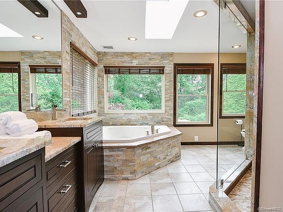 MULTIGENERATIONAL COUNTRY SIDE LIVING AT ITS BEST! A Contractors own impeccably maintained spacious 3 (possible 4) Bedroom, 3 Full Bath custom built Ranch is located just minutes from the CT River and State Parks. Located Approximately 30 Miles SE of Hartford - CT's Capital City, 115 Miles North of New York City and 125 Miles South of Boston. This home boasts two wings on the main level, the Master Suite with spa style luxurious master bathroom complete with windows thoughtfully placed to create a tranquil oasis, dual vanities, walk-in frameless glass shower with multi spray heads, designer lighting, radiant floor heat, his and hers closets separated by the open layout kitchen, living and dining rooms are the other two large bedrooms, a full bath, laundry and mudroom. The Living Room opens to a four season room with radiant floor heat, overlooking the private countryside - truly bringing the outside in. The lower level does not disappoint, adding an additional 1,500+ sqft with a potential 4th bedroom/office, an exercise room, family/rec room with a second fireplace and plenty of storage. This space can easily convert to an in-law en-suite. Oversized 2 car heated attached garage; c-air; generator ready, multi zone HVAC and updates galore. Whether sitting on the front porch, the back patio or soaking in the hot tub, this is a nature lovers dream. This multi generational home truly has it all!! A Must see!!! The hot tub is heated off the boiler for more efficiency.